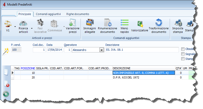 Per esempio, per inserire un’esenzione IVA particolare, che richiede una descrizione particolarmente articolata, oppure un servizio composto da più voci. è possibile procedere come segue.