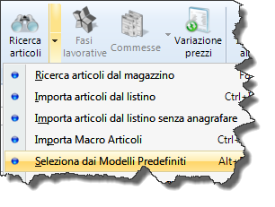 Si aprirà l’elenco di tutti i modelli creati, e sarà possibile selezionare la voce che si desidera importare e scegliere se nel documento mostrare articolo e descrizione, solo descrizione e solo gli articoli.