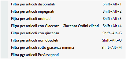 E’ possibile effettuare dei “filtri rapidi”, richiamabili da tasto destro del mouse direttamente sulla schermata magazzino.
