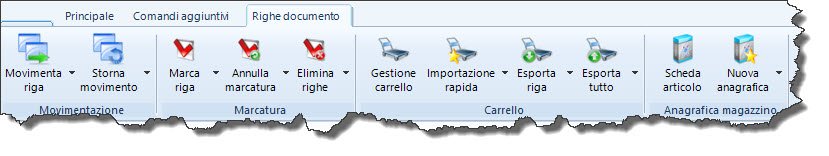 - Movimenta riga: Consente di caricare (o scaricare) una o più righe del documento