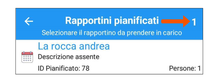 In seguito alla trasmissione del rapportino pianificato all’App, potrai visualizzare nella sezione “Elenco rapportini” dell’App una notifica (in basso a destra) con il numero dei rapportini pianificati non ancora presi in carico.