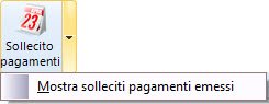 E’ inoltre possibile consultare tutte le lettere di sollecito precedentemente generate e inviate, accedendo alla pulsantiera principale della fattura, e cliccando sul menu contestuale del pulsante “Sollecito pagamenti”, come indicato in figura.
